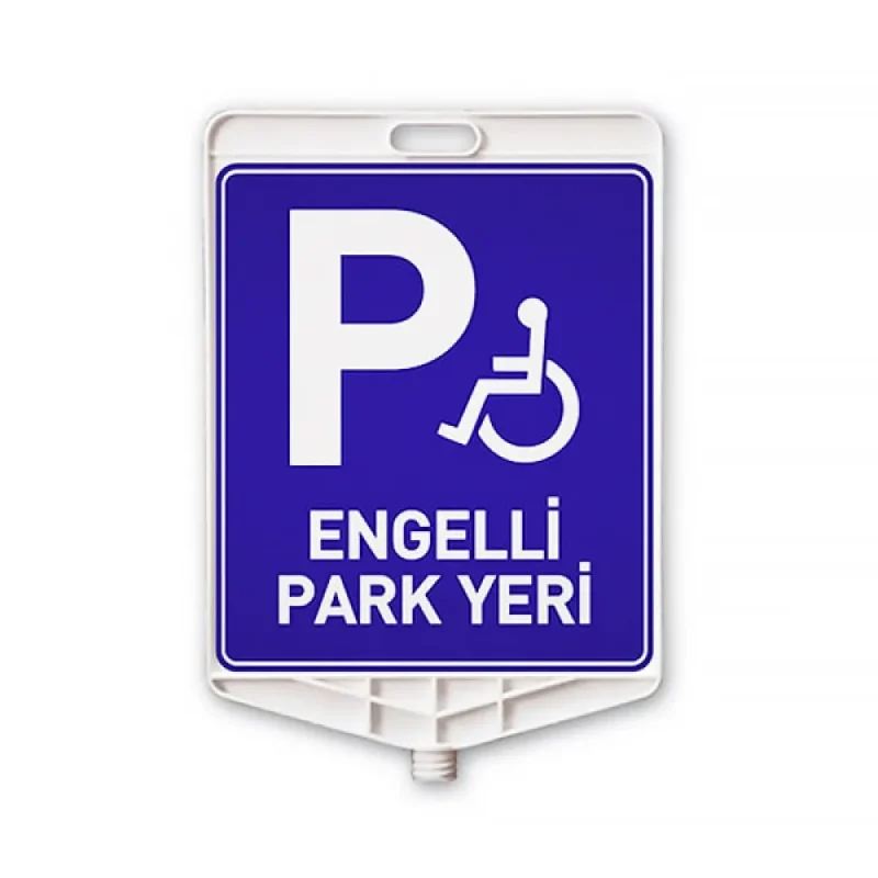 Engelli Park Yeri Plastik Trafik Levhası, kullanıcı dostu tasarımı sayesinde kolayca uyumlu delinatör veya koni modellerine monte edilebilir .