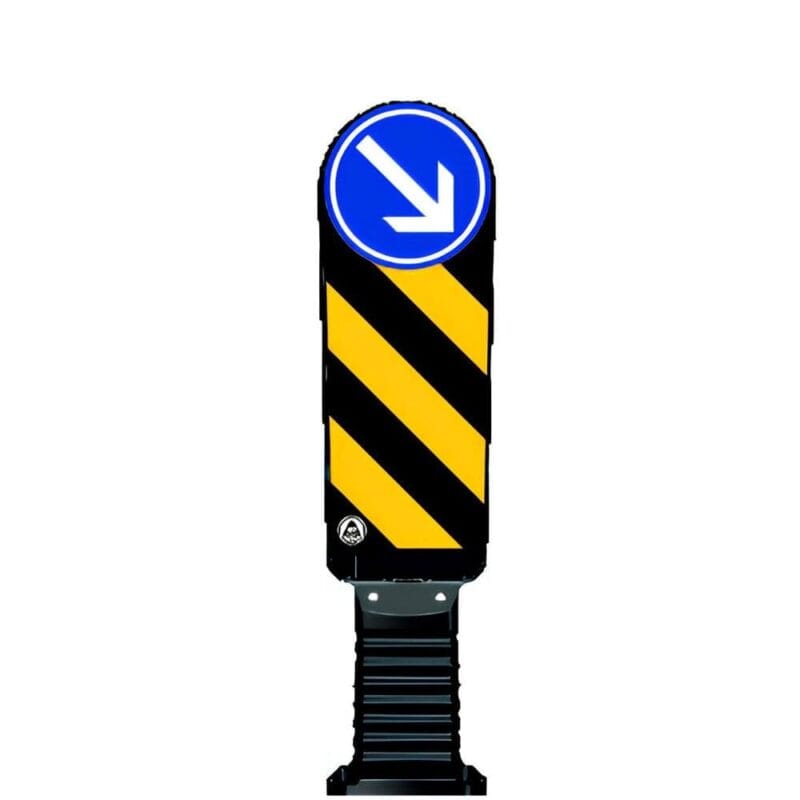 Esnek Refüj Başı Levhası 90cm, yol güvenliğini artırmak ve sürücüleri etkili bir şekilde yönlendirmek amacıyla tasarlanmıştır. TS EN 13422+A1 performans standardına sahip reflektif yüzeyi, gece ve gündüz maksimum görünürlük sağlar.