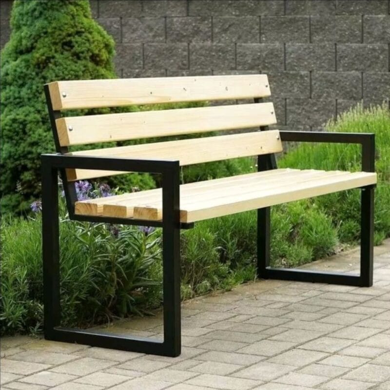Malzeme: 40×40 mm metal profil gövde, 1. sınıf ahşap oturum ve sırt desteği